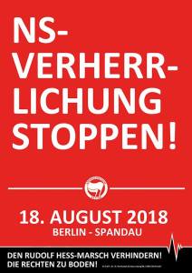 Der Rudolf Heß-Marsch – Comeback eines Nazievents? Erneut mobilisieren Neonazis bundes- und europaweit nach Berlin-Spandau um dem Hitlerstellvertreter Rudolf Heß in Berlin zu gedenken. Der Erfolg der AfD und die damit verbundenen schlechten Wahlergebnisse vieler Naziparteien, machen Nazigroßevents wie im sächsischen Ostritz zur logischen Konsequenz für NPD und Co: Für die eigene Finanzierung und den Schulterschluss des militanten Nazispektrums. Der Aufmarsch in Spandau ist Teil dieser Strategie und steht in einer Linie mit derlei Nazigroßveranstaltungen. Diesem Spektrum bleibt nur das offene Propagieren und gewalttätige Ausüben ihrer NS-Ideologie, wenn es nicht an Bedeutung verlieren will. Dies birgt eine enorme Gefahr. Schon kurz nach dem Heß-Aufmarsch 2017 wurde die Mobilisierung in der Naziszene als Erfolg verbucht, da es den Veranstalter*innen gelungen war Parteien wie Die Rechte, die NPD, den III. Weg und Kameradschaften auf diesem Aufmarsch-Event zu einen. Mit der Wiederbelebung der Heß-Märsche droht erneut ein neofaschistischer Großaufmarsch zum jährlichen erinnerungspolitischen Ritual der NS-Szene zu werden.